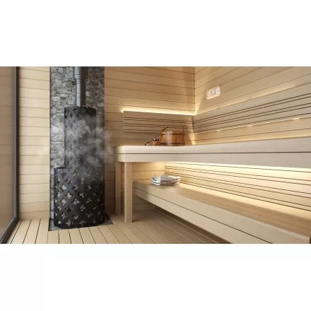 Данная модель равномерно и быстро обеспечивает необходимую температуру для парной, а также формирует достаточную влажность и кубы пара.