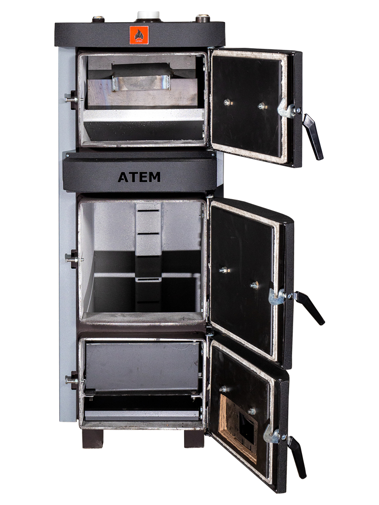 Твердотопливный котел АТЕМ Житомир-18М имеет увеличенный размер топки котла "Житомир" позволяют комфортно загружать топливо разного размера, а конструкция теплообменника спроектирована таким образом, чтобы значительно снизить засор котла продуктами сгорания и обеспечить стабильную работу в любых условиях!Особенности: