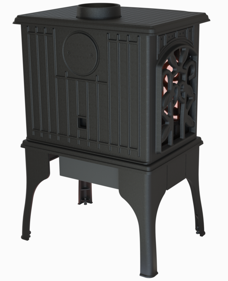 Универсальное подключение дымохода – сверху, сзади – обеспечивает гибкость при установке, что делает эту модель удобной для различных помещений.